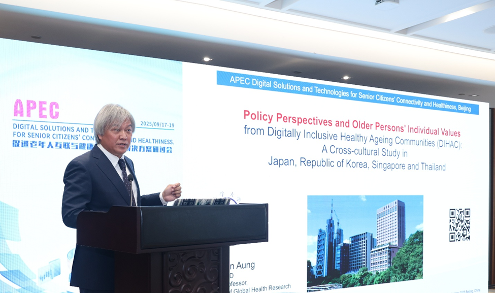 Asia Pacific Economic Cooperation (APEC) convened a meeting titled “Digital Solutions and technologies for Senior Citizen's Connectivity and Healthiness” in Beijing from 17-19 September 2025. Joined by 33 delegates from 14 economies, government officials and corporates of China, ASEAN Centre for Active Ageing and Innovation (ACAI) and APEC officials, Associate Professor Myo Nyein Aung was invited to deliver a keynote presentation entitled Policy Perspectives and Individuals Values Based On Digitally Inclusive Healthy Ageing Communities (DIHAC) Study.
